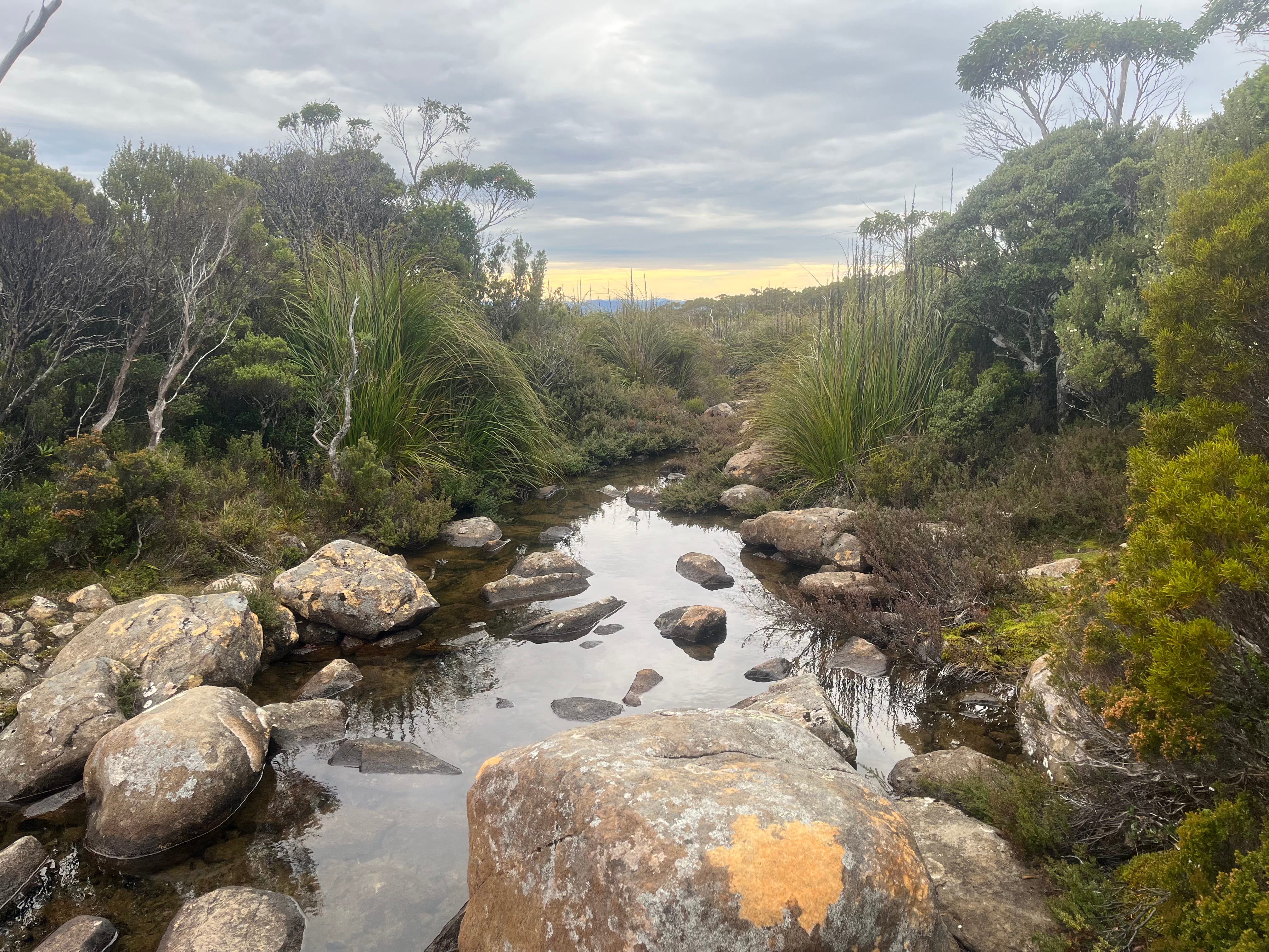 The last two week of March and the first two weeks of April are the ‘golden hours’ of our year. The flies have died, the snakes are sleepy, the weather is perfect and the days are still long enough. This is the time for Alpine walks so we did Lake Osborne and the Arve Falls walks in the Hartz Mountains. The Silver Banksia ( Banksia marginata ) was in flower and full of raucous birdlife getting their calories in before winter.